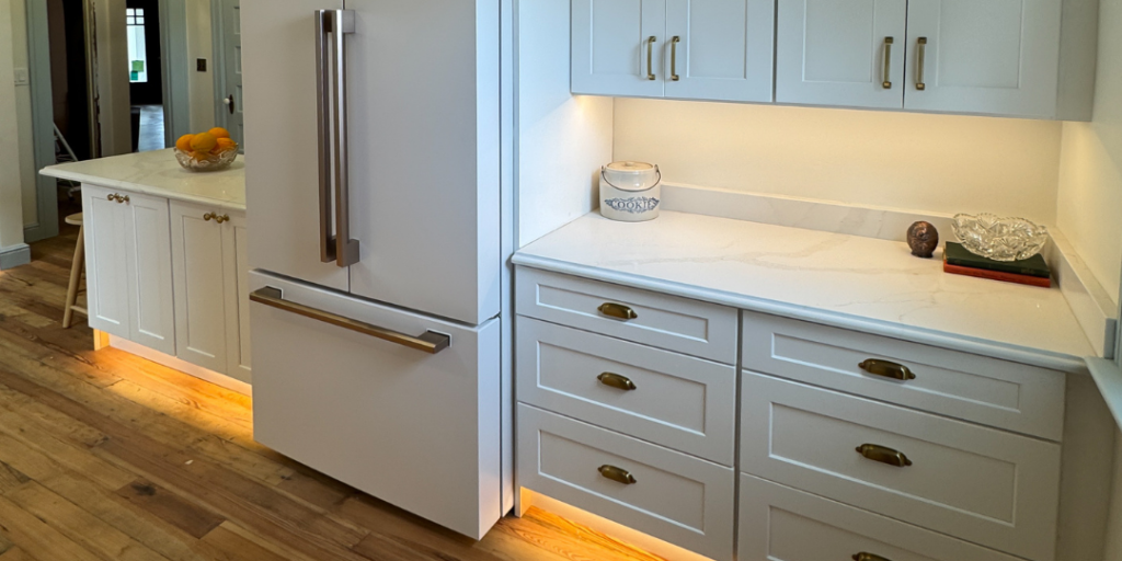 The RTA Store Designer Jessica suggests incorporating under-cabinet lighting as an easy home upgrade. “It’s a simple way to improve functionality while giving the kitchen a more polished, high-end feel.” You can also consider toe-kick lighting along with it, to complete the look. Both types of lighting not only help to create an ambiance in the room, but also aid in prep lighting and nightlights.